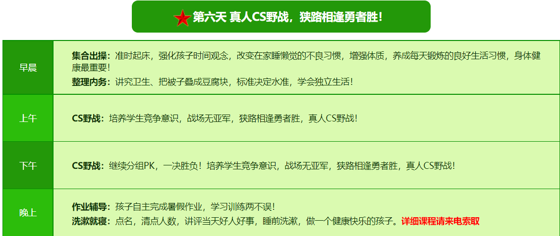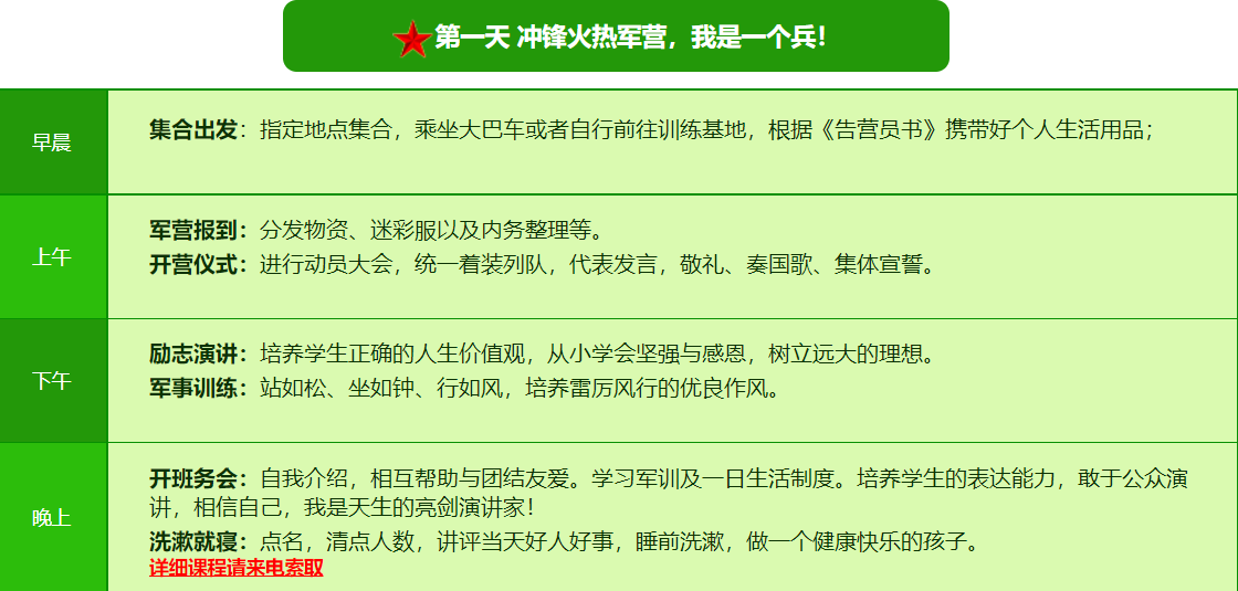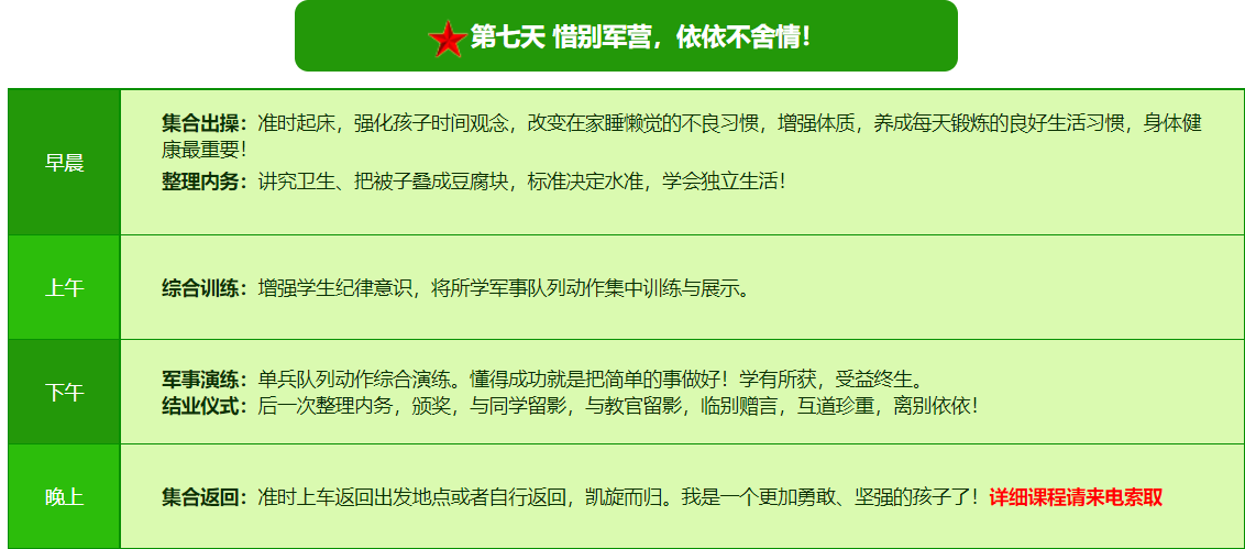 2026西安亮剑军事夏令营7日营课程表